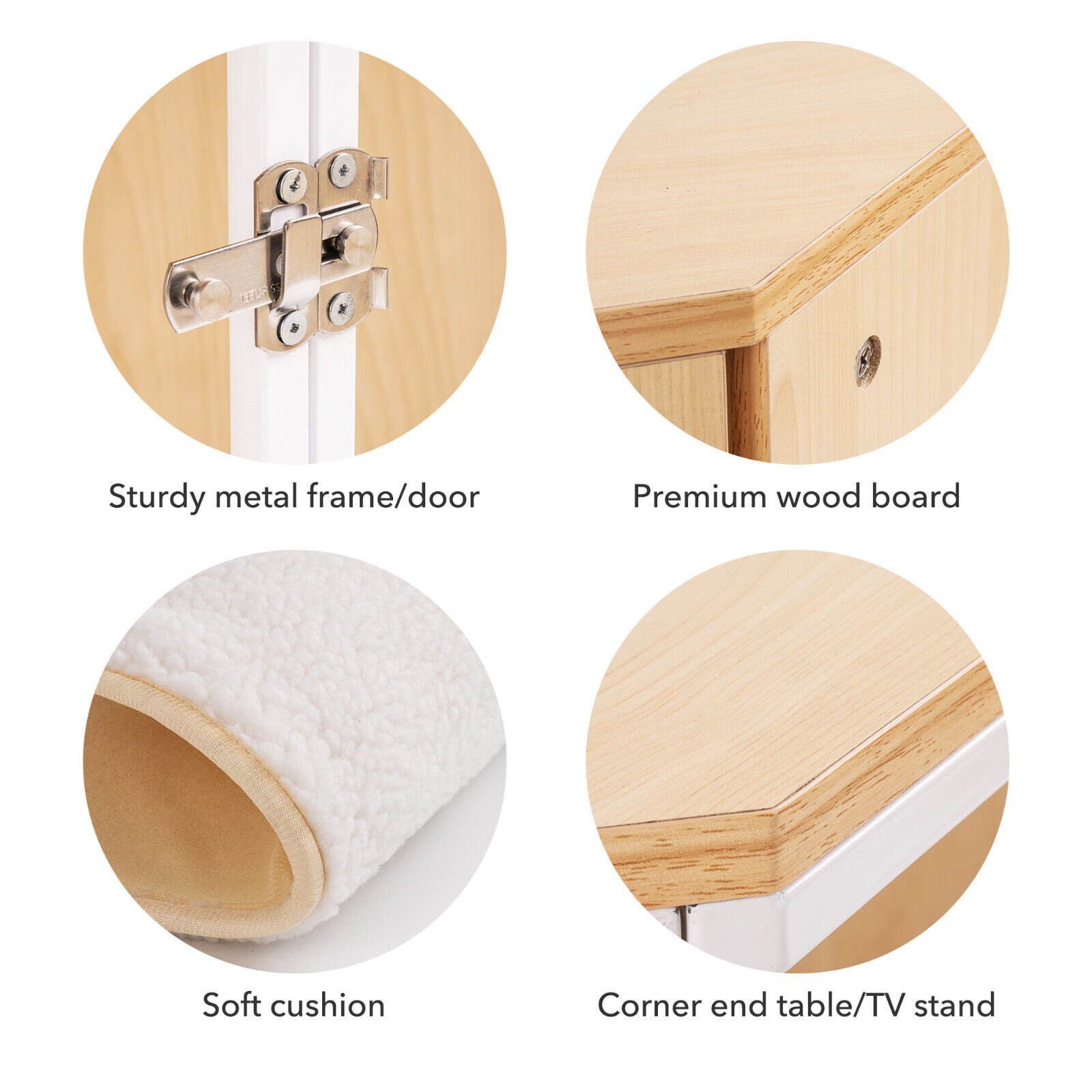 Great combination with furniture and pet house--corner designed pet crate; which can be placed in the corner to save your space. It is suitable for small and medium dogs.